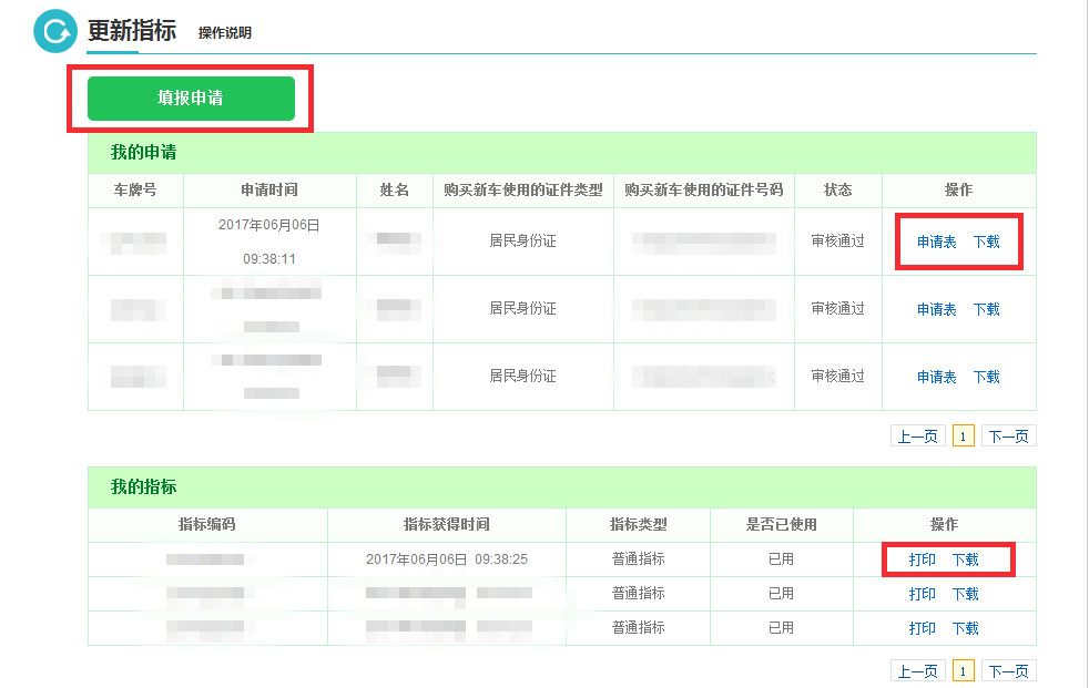 在“我的指标”栏点击打印或下载,最终更换车辆是要拿纸质的指标